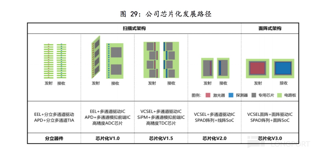 接收端:SPAD阵列集成化(将原先128通道集成到1颗芯片);