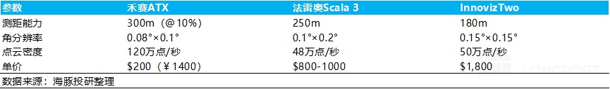 从目前激光雷达的海外玩家法雷奥,Innoviz来看,海外激光雷达的性能仍然大幅落后于禾赛的新一代产品(测距距离,点云密度),但终端售价却非常昂贵。