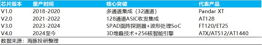 禾赛ATX通过芯片化将激光器+探测器数量从之前256个分立器件集成到2颗ASIC芯片上,已经实现了激光发射芯片 VCSEL、激光接收芯片 SPAD 及控制芯片 ASIC 的自研,实现了物料成本的大幅降低;