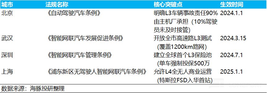 政策上:《北京市自动驾驶汽车条例》、《武汉市智能网联汽车发展促进条例》、《深圳经济特区智能网联汽车管理条例》等法规的出台,对L3 级自动驾驶车辆的上路流程、事故责任界定等关键方面进行了规定,加速L3 级自动驾驶商业化落地。