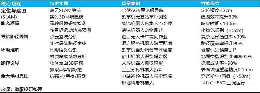 激光雷达与芯片行业一样,都具备强场景扩展性,虽然机器人场景目前出货仍以割草机先行,但由于激光雷达本身具备定位与建图、障碍物感知、导航路径规划、环境理解等功能,在各种机器人场景下仍具备大规模应用解锁的潜力。