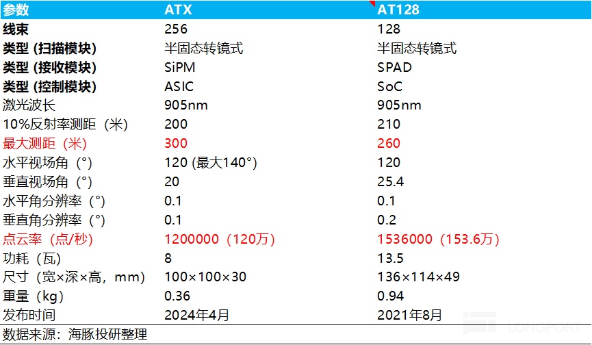 其中高端雷达AT512的点云密度相比AT128提高8倍,最大测距距离从AT128的260米提高到400米,而主力出货的ATX的价格已经不到200美元(1400元左右),相比2022年刚量产的AT128 5000元左右下滑幅度达72%,目前价格也仅为AT128的一半。