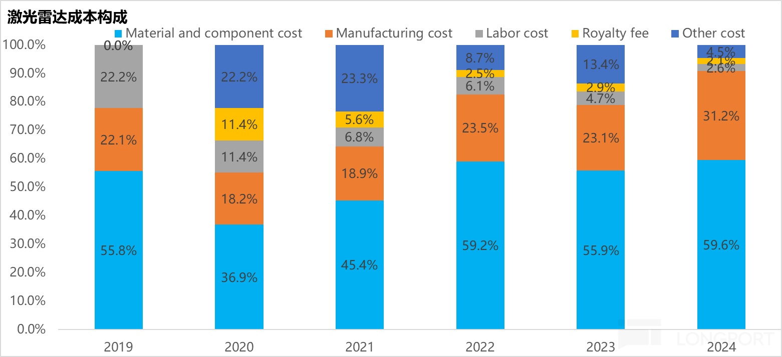 而生产成本在2024年已经占到激光雷达成本端的31%,禾赛仍然具备强规模效应降本优势,新进入玩家难突破量产成本阙值。