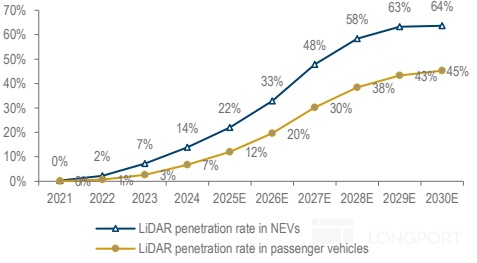 乘用车ADAS赛道:激光雷达正处于爆发前夜,渗透率即将跨越“0-1“到”1-N“的拐点阶段: