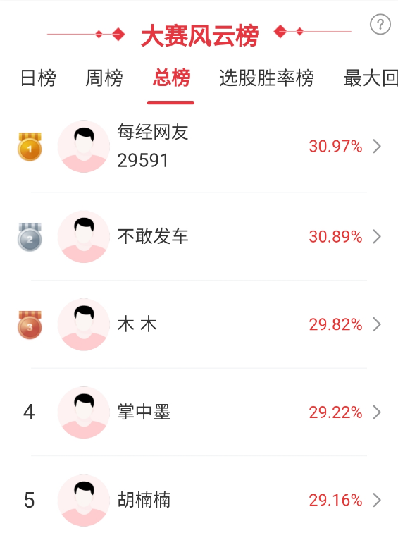 在每日经济新闻App举办的掘金大赛中,第73期比赛于周五结束,比赛时间5个交易日。多位选手抓住了行情机会,其中冠军收益率30.97%,亚军收益率30.89%,季军收益率29.82%。本期比赛共841名选手取得正收益,他们都将获得现金奖励。