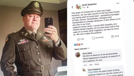 看媒体报道,美国陆军上校斯科特·斯蒂芬斯最近也倒了霉,他因为暗示查理·柯克“煽动”政治暴力,已经被军方停职。