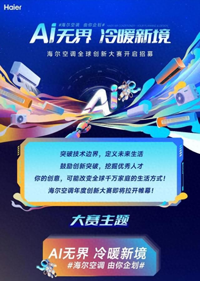 【环球网科技综合报道】为深入推进“全屋AI智慧健康空气专家”战略,海尔空调将于9月16日正式启动以“AI无界 冷暖新境”为主题的全球创新大赛。本次活动由海尔空调主办,中国家用电器研究院设计研究与评测中心等单位协办,旨在以开放共创的方式,汇聚全球智慧,共同打造下一代智慧空气体验。那么,本次活动如何参与,获奖作品又将如何落地应用?