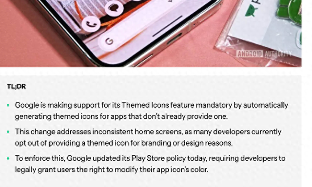 为确保功能落地,谷歌同步更新Play商店开发者分发协议(DDA),新增关键条款:开发者需授予用户“非独占、全球范围、永久有效”的许可,允许其修改应用图标颜色或主题,并展示、使用修改后的版本。据悉,该条款对新增开发者立即生效,存量开发者需在2025年10月15日前完成合规,否则将面临应用下架风险。(青山)