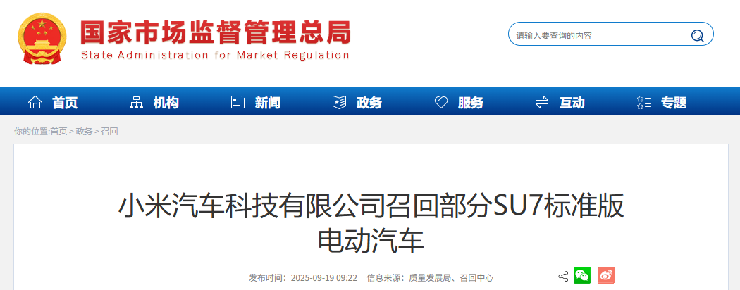 日前,小米汽车科技有限公司根据《缺陷汽车产品召回管理条例》和《缺陷汽车产品召回管理条例实施办法》的要求,向国家市场监督管理总局备案了召回计划。决定自即日起,召回2024年2月6日至2025年8月30日生产的部分SU7标准版电动汽车,共计116887辆。