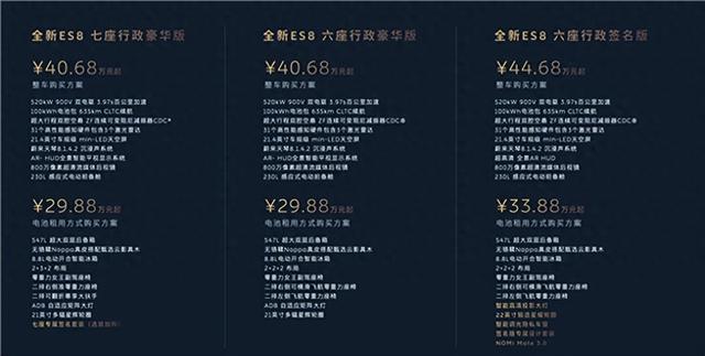 今晚,全新蔚来ES8上市,共推出3款车型,电池买断价格为40.68-44.68万元,采用Bass电池租赁方案,更是仅需29.88-33.88万元。