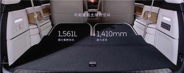 第三排座椅可以通过后备箱处的控制按键一键放倒,放倒后车内后排拓展为一个纯平大空间,进深1410mm,空间达到1561L,进一步提高装载能力。