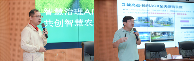 研极微副总经理房汝明、研发中心负责人艾国分别介绍「神眸AI富民计划」。以及捐赠的神眸AI系列产品介绍