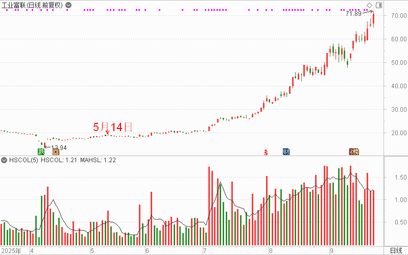 例如在5月14日,火线快评提到“英伟达和AMD将向沙特AI公司提供芯片!机构看好相关产业链前景”,当时工业富联股价在18元左右,而近期股价已经涨至70元附近。在6月6日提到了“高端电子布供不应求,行业巨头订单需求暴增”,其中宏和科技从12元附近最高涨至47元。