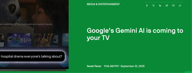 谷歌强调,Gemini的加入不会取代现有Google Assistant功能,用户仍可通过传统语音指令控制电视。首批推送将于今日启动,TCL QM9K系列用户将率先体验,随后扩展至Google TV流媒体播放器、沃尔玛onn 4K Pro电视及2025款海信、TCL部分机型。随着Android XR头显设备的年底发布,Gemini还将进一步渗透至虚拟现实场景,构建“电视-手机-穿戴-XR”的全终端智能生态。(青山)