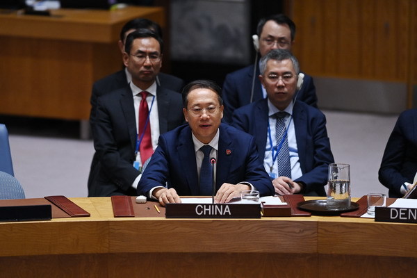 当地时间2025年9月24日,外交部副部长马朝旭在纽约联合国总部出席安理会“人工智能和国际和平与安全”高级别会议并发言。