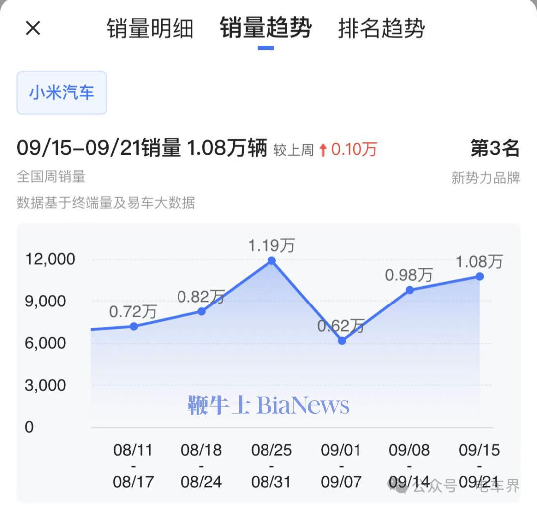 如果按周均超1万辆的节奏,小米的月交付辆将超过4万辆,甚至冲刺5万辆。