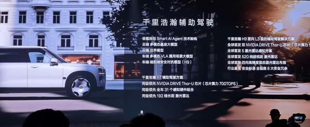 至于辅助驾驶方面,Max及Ultra版搭载千里浩瀚H7辅助驾驶系统,采用由192线激光雷达和英伟达Thor-U芯片等组成的感知硬件系统;Hyper版则搭载千里浩瀚H9辅助驾驶系统,不仅升级520线长距激光雷达,还配备4个高精度固态激光雷达和双英伟达Thor-U芯片,拥有更加稳定的辅助驾驶表现和更加充裕的安全冗余,甚至可以看作为量产级L3级辅助驾驶解决方案。
