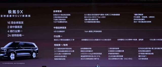 9月29日,极氪品牌旗下的全新旗舰豪华SUV——极氪9X正式上市。新车共推出4款车型,零售价46.59万-59.99万元,超级置换权益后限时售价45.59万-58.99万元。极氪9X基于浩瀚-S架构打造,不仅采用全域900V混动高压架构,提供了三电机超1000千瓦的动力输出和最高380公里的纯电续航;还配备了浩瀚AI数字底盘和千里浩瀚H9辅助驾驶系统等极氪旗下最新的科技配置;像是32扬声器的殿堂级音响系统、飞翼式滑移屏、二排行政座椅等豪华配置同样没有缺席。极氪9X的上市不仅显露出中国品牌冲击超豪华市场的底气,也将重新用“技术旗舰”定义超豪华SUV。