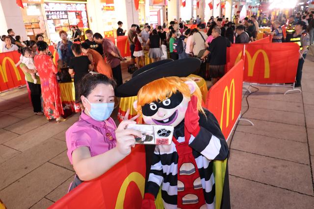 微笑比yeah,和《黑神话:悟空》游戏人物亲密合影;叮叮咚咚骰子声响,亲自上手感受闽南博饼文化;品尝麦当劳各类限定单品,享受别样中秋滋味……9月30日,中山路步行街人声鼎沸,以中秋为主题的 “金拱门 | 黑神话圆月市集”吸引众多市民参与,热闹活动将持续至10月6日。