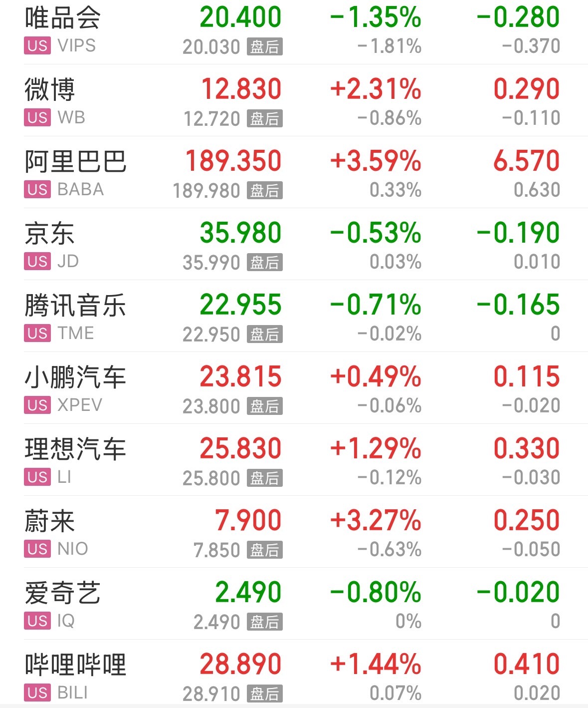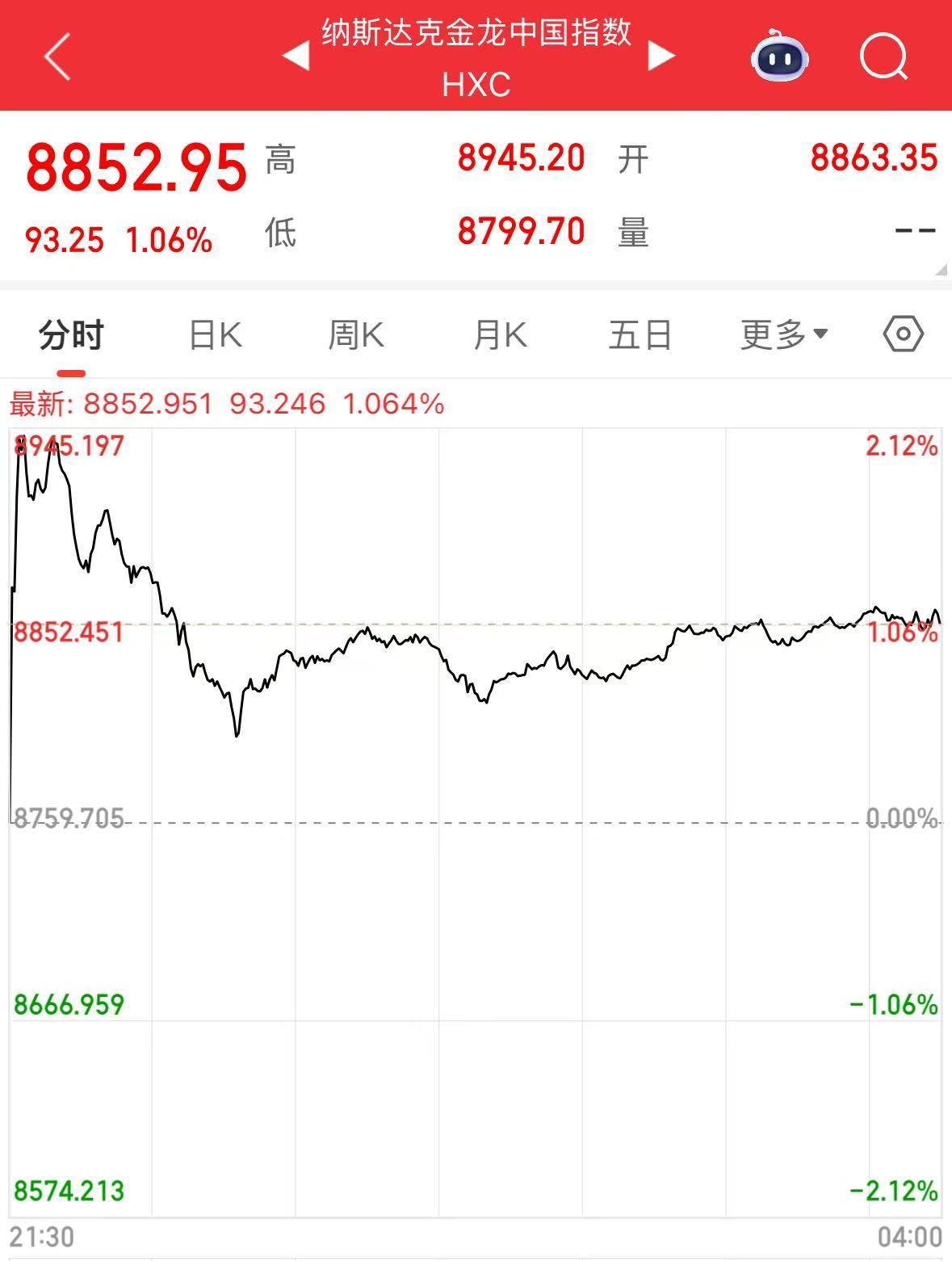 纳斯达克中国金龙指数收涨1.06%,热门中概股多数上涨。阿里巴巴、蔚来涨超3%,微博涨超2%,理想汽车、哔哩哔哩涨超1%,小鹏汽车涨0.49%,唯品会、京东、爱奇艺下跌。