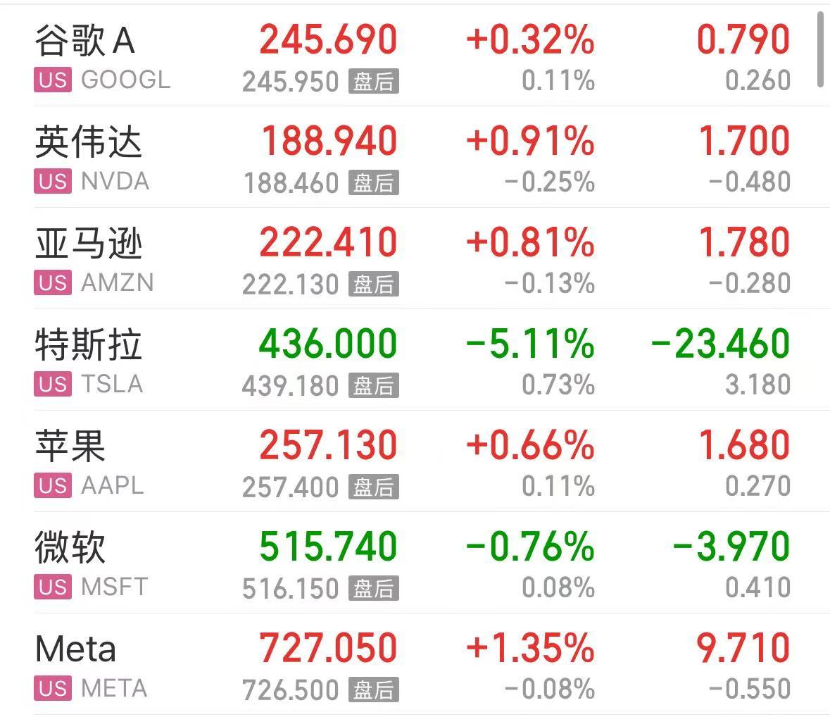大型科技股涨跌不一,Meta、英伟达、亚马逊、苹果、谷歌上涨,特斯拉下跌5.11%,市值蒸发约756亿美元(约合人民币5387亿元),微软下跌。