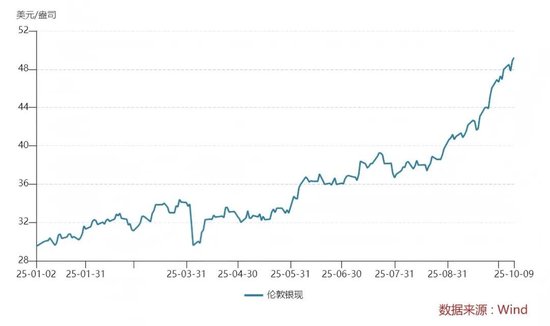 李钢认为,一方面,金价屡创新高带动贵金属整体估值重估,资金将白银视为加杠杆版的通胀对冲工具;另一方面,新能源、光伏、电动车等行业对白银的消费持续走强,使其兼具“避险资产”和“工业金属”双重逻辑。再叠加美联储降息预期升温、美元走弱及地缘风险加剧,流动性与情绪共同推动白银进入快速上行通道。