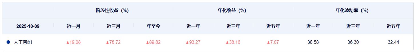 再从过往表现来看,两个指数近一年的收益都非常高,尤其是中证人工智能产业指数,收益超过90%;拉长时间看,近三年的业绩也是中证人工智能产业指数的年化收益更高;而在近五年,中证人工智能主题指数的年化收益略高于中证人工智能产业指数。