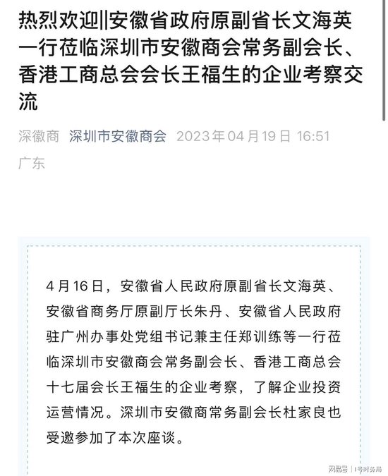 2019年4月,王福生作为安徽省全椒县人民政府引进的“招商客商”,与当地海孚公司投资方展开合作洽谈。
