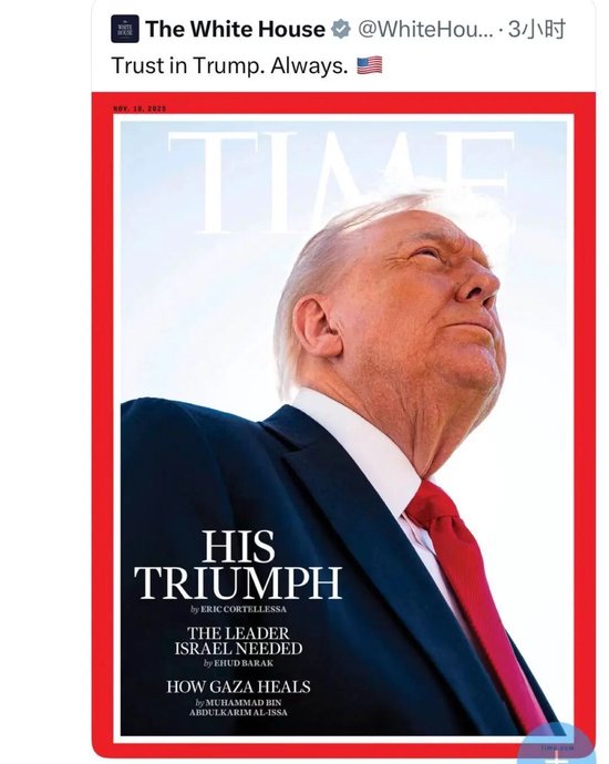 我看到,美国《时代》杂志不出意外将特朗普作为了封面,一个特朗普的侧脸大特写,标题是“他的胜利”!