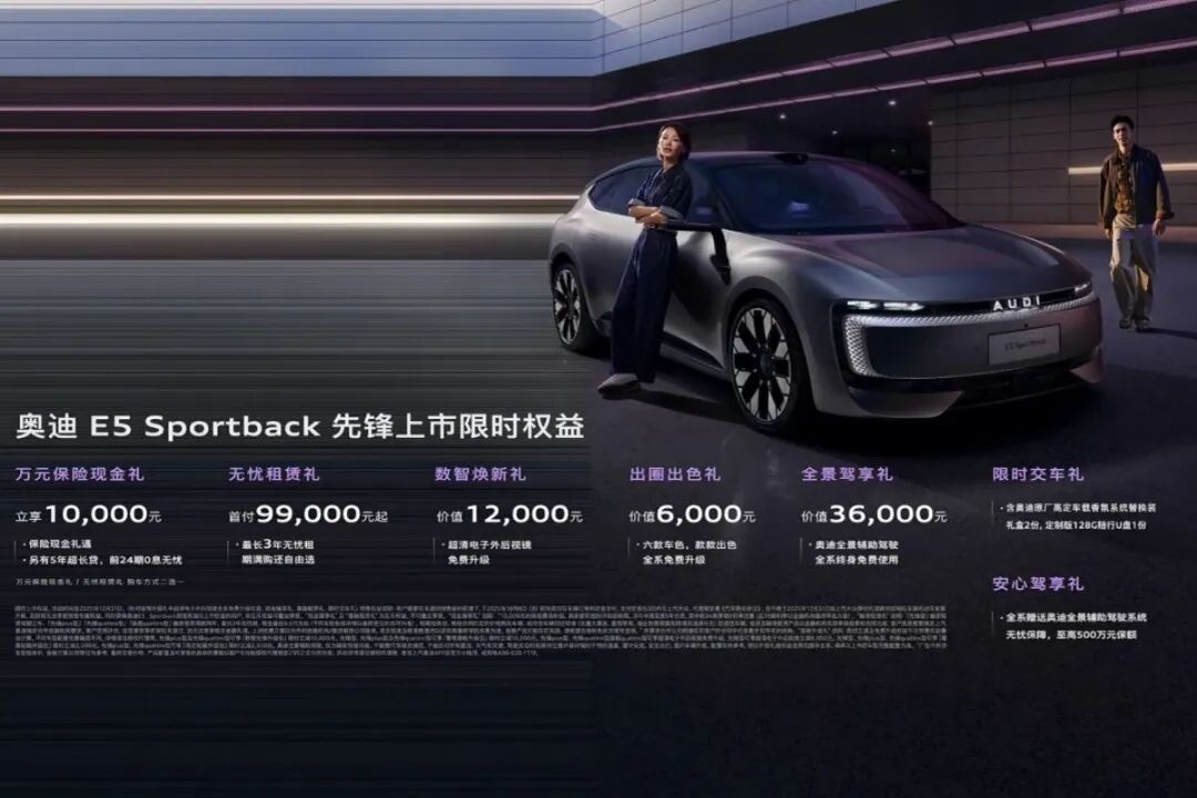 奥迪 E5 Sportback(下简称“奥迪E5”)以“上市30分钟斩获万单”的成绩,为这个问题提供了清晰注脚。这款融合德系工艺与中国科技的车型,以22万级定价直面特斯拉Model 3的市场统治,悄然改写着新能源豪华车的价值逻辑。