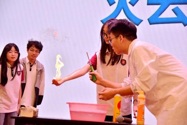在科普报告环节,纪杰教授从火灾的历史演进切入,系统讲解了火灾的历史、形成机制,以及建筑、森林和工业等不同类型火灾的特点与危害,强调了提升消防安全意识、学习防火知识的迫切性。报告中穿插了许多引人入胜的趣味知识点,如苏东坡不为人知的“防火专家”身份、故宫太平缸设计中的防火智慧、影视作品中“烟头引燃汽车”场景的实验辟谣等;展示了当前的先进消防科技,如无人机灭火、机器狗搜救等新的装备,极大地激发了观众的好奇心。报告中还进行了一系列互动趣味火灾小实验,将现场气氛掀起一个又一个高潮。学生们积极参与、亲身体验,对火灾科学知识有了更深刻的认识。