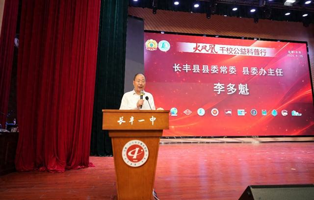 启动仪式由董流和胡皓玮主持。李多魁在致辞中对到场嘉宾和师生表示热烈欢迎。他表示,长丰县高度重视校园安全与青少年科学素养,此次活动是践行“生命至上、安全第一”理念、推动科普与素质教育融合的重要举措。活动以“火”鉴安全、以“书”传爱心、以“行”筑平安,助力长丰县构建起中小学安全教育新格局,让安全理念深植于师生心中。