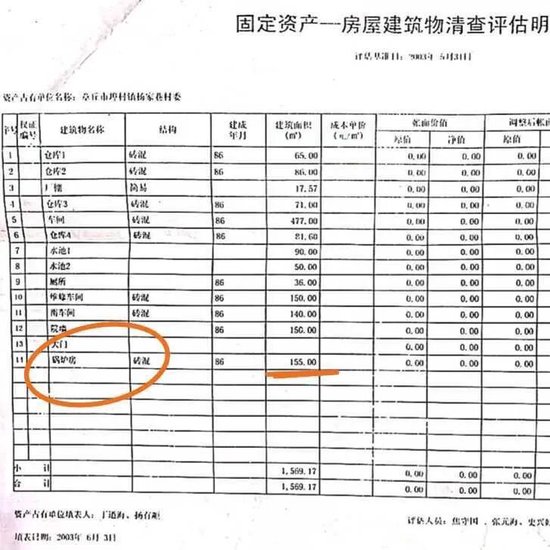 笔者注意到,金星树脂厂改制时做的资产评估中提到,村集体资产包括房屋建筑14项。房屋建筑清查评估明细表中赫然写着155平米的锅炉房。