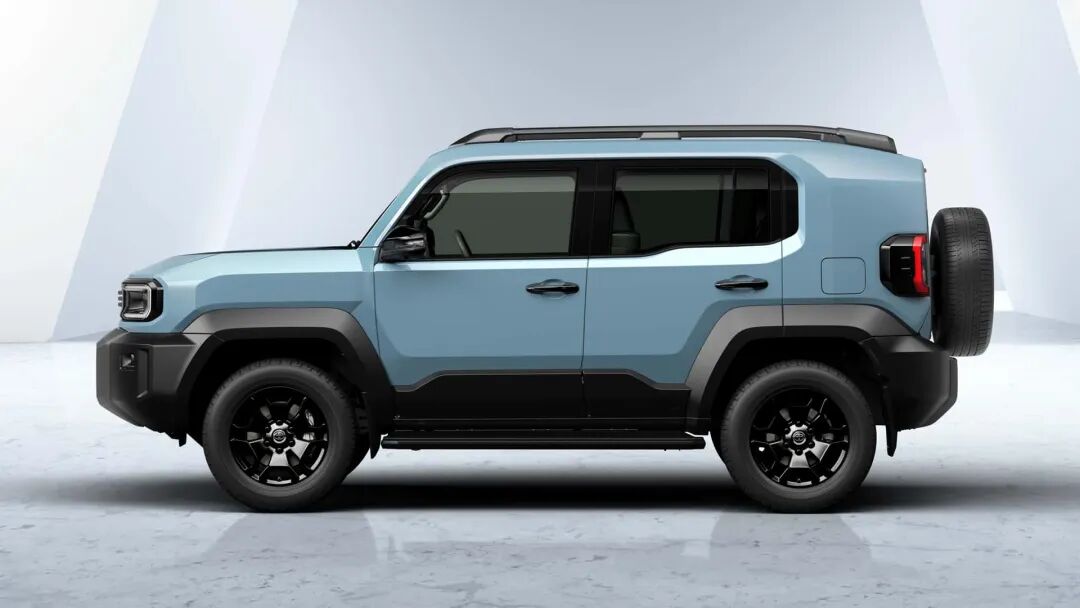 车身侧面,相比上代车型的三门设计,新一代车型则采用五门设计,不过每个车门的尺寸都不太大,宽大的C柱成为这款车的标志,同时侧面外扩的轮眉、黑色侧裙,以及黑化的轮圈,进一步展现越野感。尺寸方面,新车长宽高分别为4575/1855/1960mm,轴距为2580mm,整体尺寸与普拉多大大缩小,相比普拉多轴距短270mm,与卡罗拉Cross尺寸相近,与我们熟悉的坦克300相比,除车身高度外,其他尺寸均小上一号。车尾部分,外挂式备胎依然会是标配,尾门也同样会是侧向开启,竖置的尾灯采用立体化设计,看上去相当别致,尾部依然拥有厚实的保险杠。