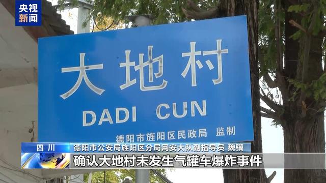德阳市公安局旌阳区分局网安大队副指导员 魏骥:我们通过实地走访大地村当地群众,并向辖区交通、应急、消防等相关部门核实,确认大地村未发生气罐车爆炸事件。