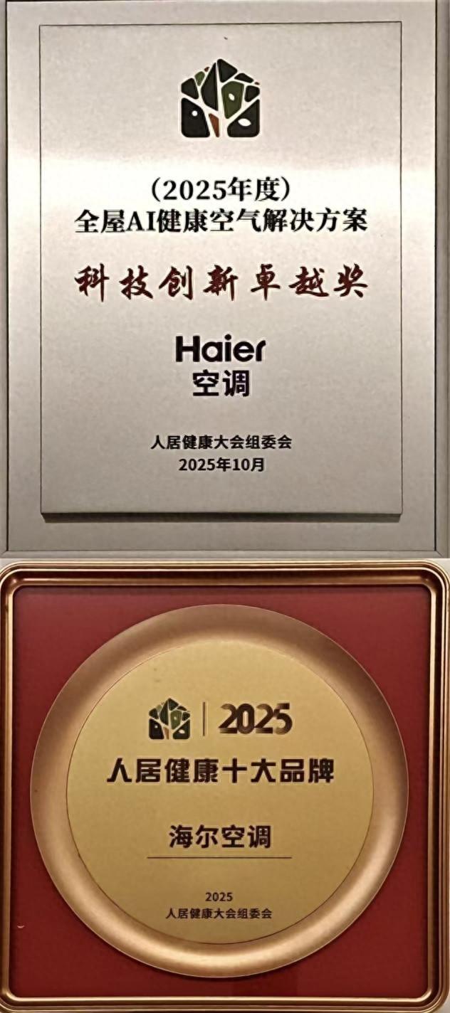 2025年10月16日,第四届中国人居健康大会在北京成功召开,海尔空调携手中国建材市场协会、中国健康管理协会、九牧、千年舟等多家领军企业发起的健康家产业创新联盟正式成立。会上,海尔空调凭借在健康空气领域的卓越表现,成功入选“2025健康人居十大品牌”,并斩获2025年度全屋AI健康空气解决方案科技创新卓越奖。