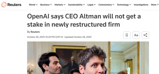 若OpenAI未来启动IPO,将为其投资者带来显著回报。目前,微软作为主要支持者,在累计投资130亿美元后,持有OpenAI约27%的股份;软银、Thrive Capital、阿布扎比MGX等机构也均为其重要投资方。(纯钧)