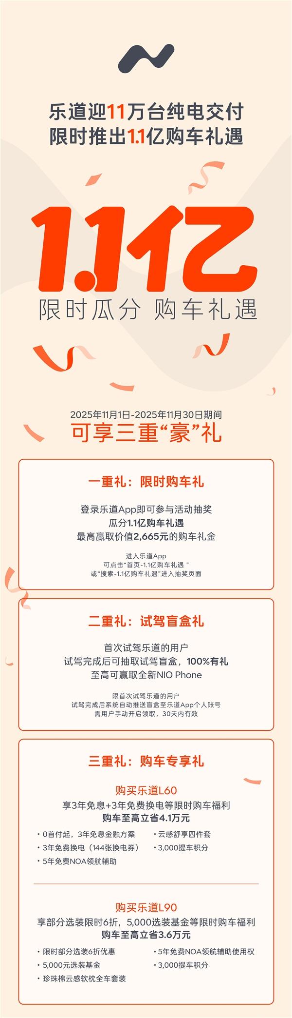 一重礼:登录乐道App即可瓜分1.1亿购车礼遇(新增);