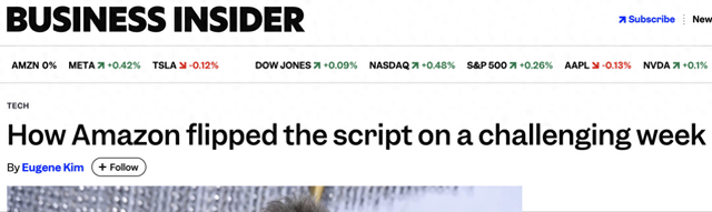 【环球网科技综合报道】11月2日消息,据businessinsider报道,在经历万人裁员与"AI落后者"质疑后,亚马逊仅用两天时间便实现市场情绪大反转。公司周四公布的三季报显示,AWS季度收入达330亿美元,同比增长20%,为2022年以来最快增速;同时上调全年资本支出指引,并披露AI产品线多项收入突破,推动股价周五刷新历史新高。