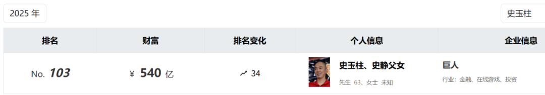他依然在民生银行等多家企业担任要职。他与女儿史静,以540亿元身家,留在最新胡润百富榜上。