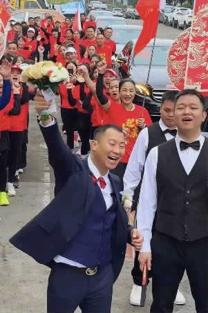 在湖南邵阳,新郎张津湘携268人跑团跑步接亲。