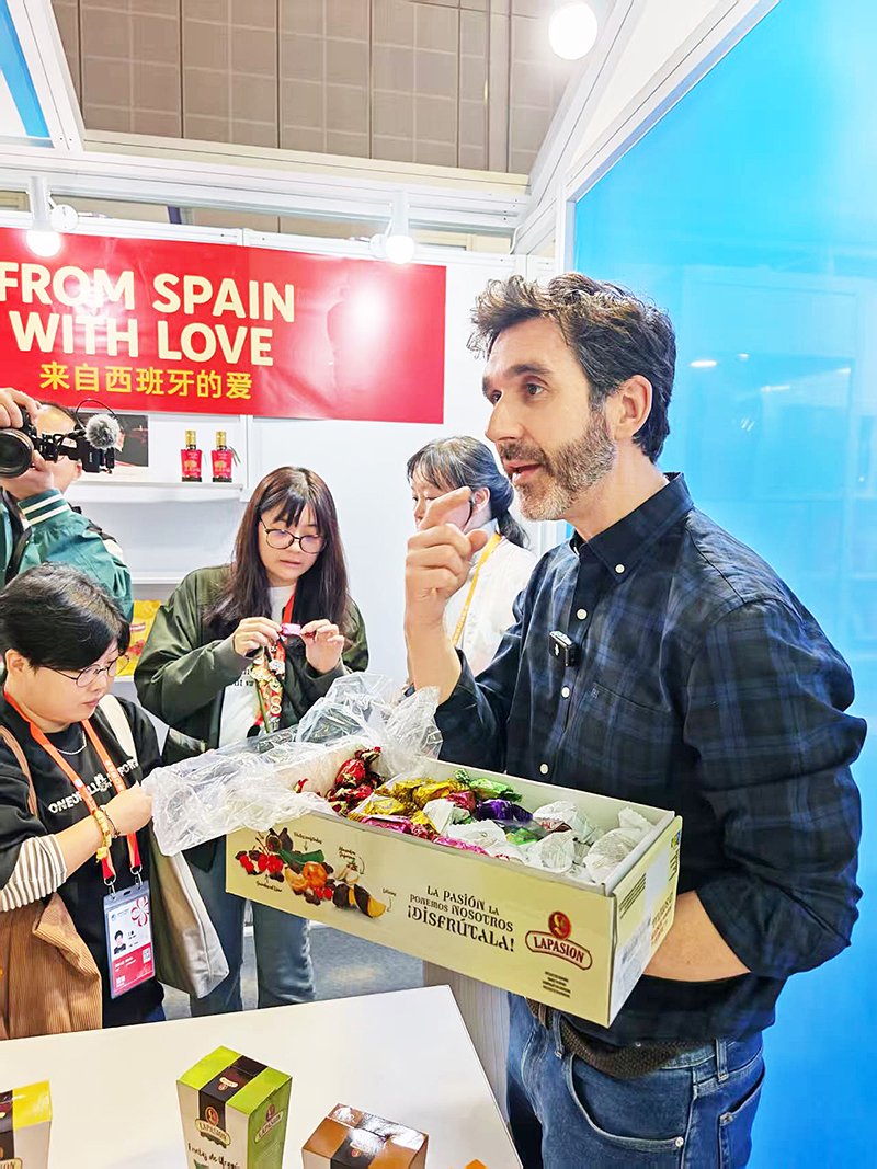 来自西班牙的激情糕饼公司今年首次参加进博会。该公司外贸经理江献在现场热情地分享公司的糖果、烤面包片等产品,并现场收集、记录大家的反馈意见。江献表示,对中国市场非常看好,“今年是我们第一次参加进博会,希望能在这里取得突破”。