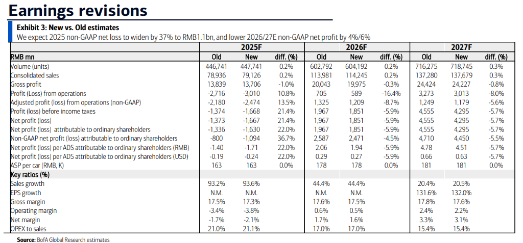 然而,乐观的长期展望伴随着对短期财务的审慎调整。报告指出,考虑到产品组合变化等因素,该行将小鹏2025年的非公认会计准则(non-GAAP)净亏损预期扩大了36.7%,同时将2026年和2027年的净利润预期分别下调了4.5%和5.5%。