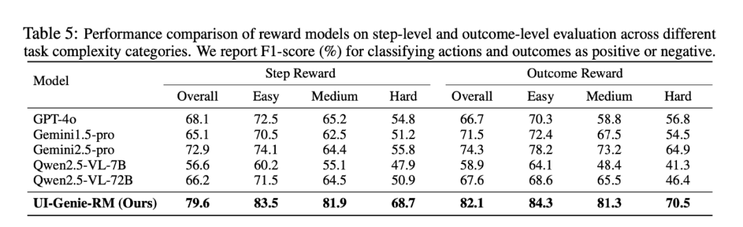为了解决轨迹验证的难题,UI-Genie 首先构建了一个强大的奖励模型 —— UI-Genie-RM。这是首个专为移动 GUI 智能体轨迹评估而设计的奖励模型。