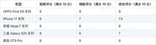 OPPO Find X9 系列在拍照和续航方面表现堪称卓越,当之无愧地排在首位。