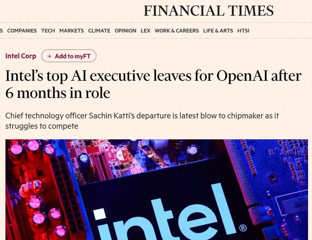 【环球网科技综合报道】11月11日消息,据《金融时报》报道称,英特尔今日证实,上任仅六个月的首席技术与人工智能官萨钦·卡蒂(Sachin Katti)已决定离职,并将加入人工智能初创公司OpenAI,负责其AI基础设施的设计与构建。这一变动标志着英特尔在争夺高端人工智能人才方面再度受挫,也为其本已承压的AI战略增添不确定性。
