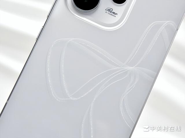 Reno15 Pro的整体风格可以用“运动芭蕾风”来形容——既有柔美的曲线感,又不失利落的结构。这种调性在背板中央那个“星光蝴蝶结”上体现得最明显。它不是贴纸,也不是普通纹理,而是通过全息光刻工艺做出的裸眼3D效果。