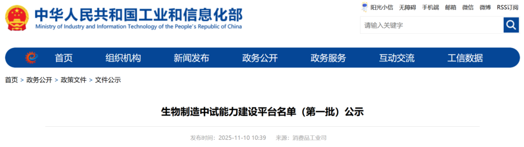 根据《工业和信息化部办公厅 国家发展改革委办公厅关于开展生物制造中试能力建设平台培育工作的通知》(工信厅联消费函〔2025〕234号),经省级工业和信息化主管部门推荐及专家评价等程序,形成了《拟发布的生物制造中试能力建设平台名单(第一批)》,现予以公示。