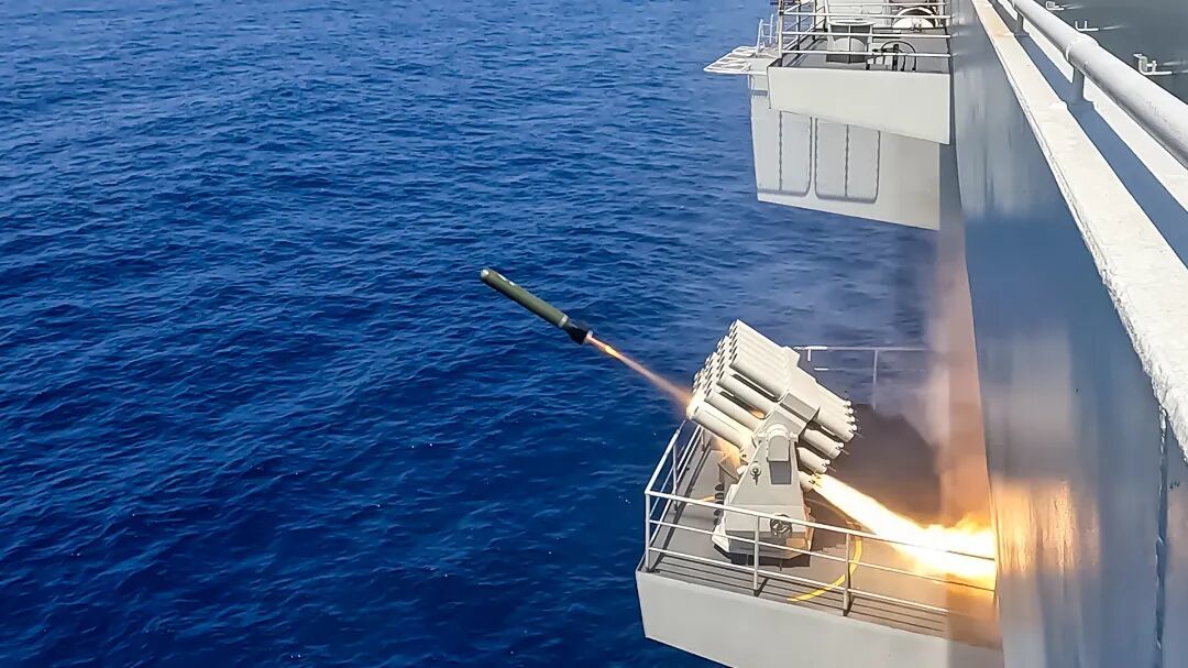 海南舰发射数枚干扰弹实施干扰