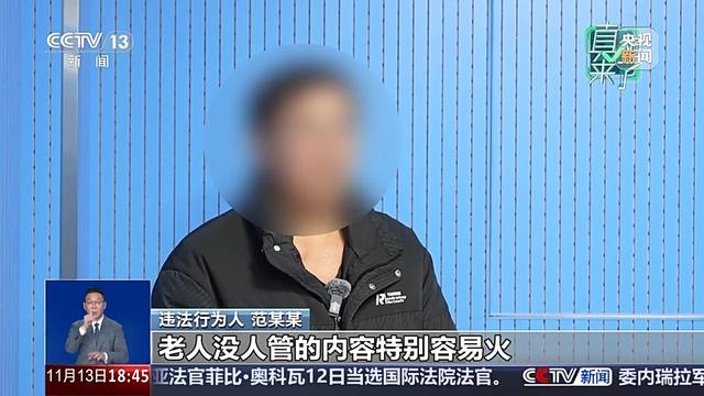 违法行为人 范某某:我看到网上那种家庭纠纷、老人没人管的内容特别容易火,就想模仿着做一个。我用AI软件生成一些看起来很真实的图片,吸引眼球,涨点粉丝,以后说不定能接点广告什么的。